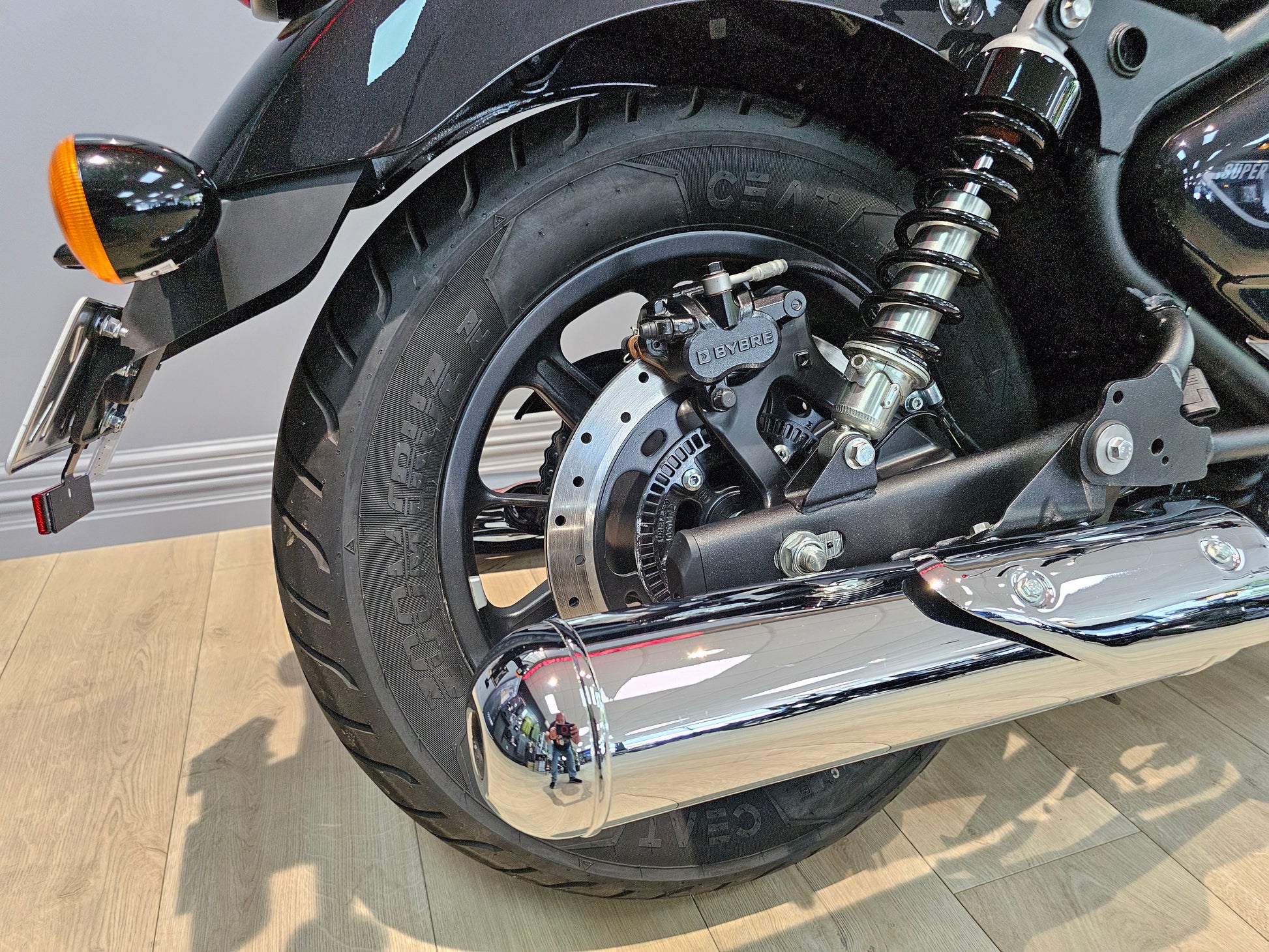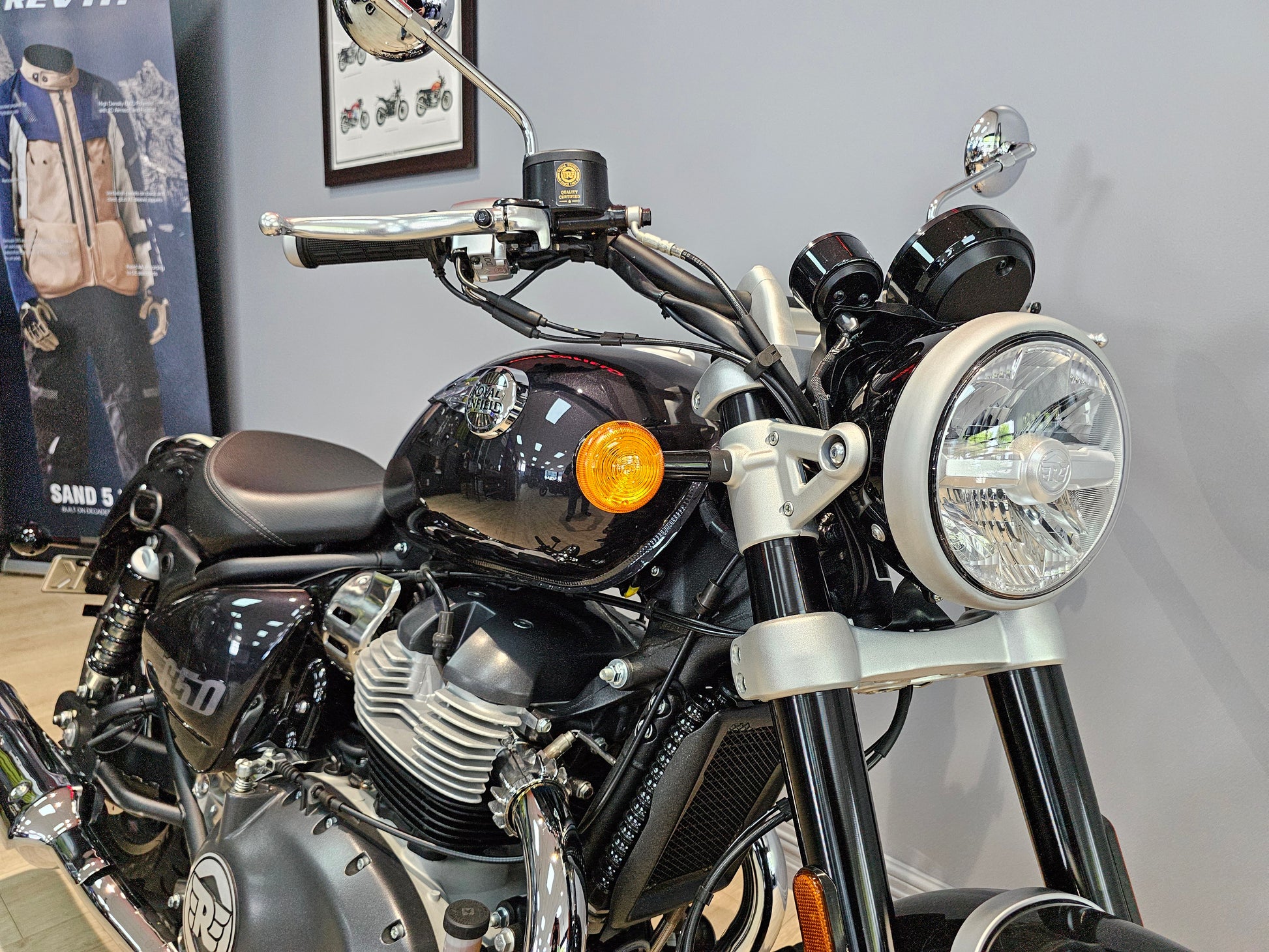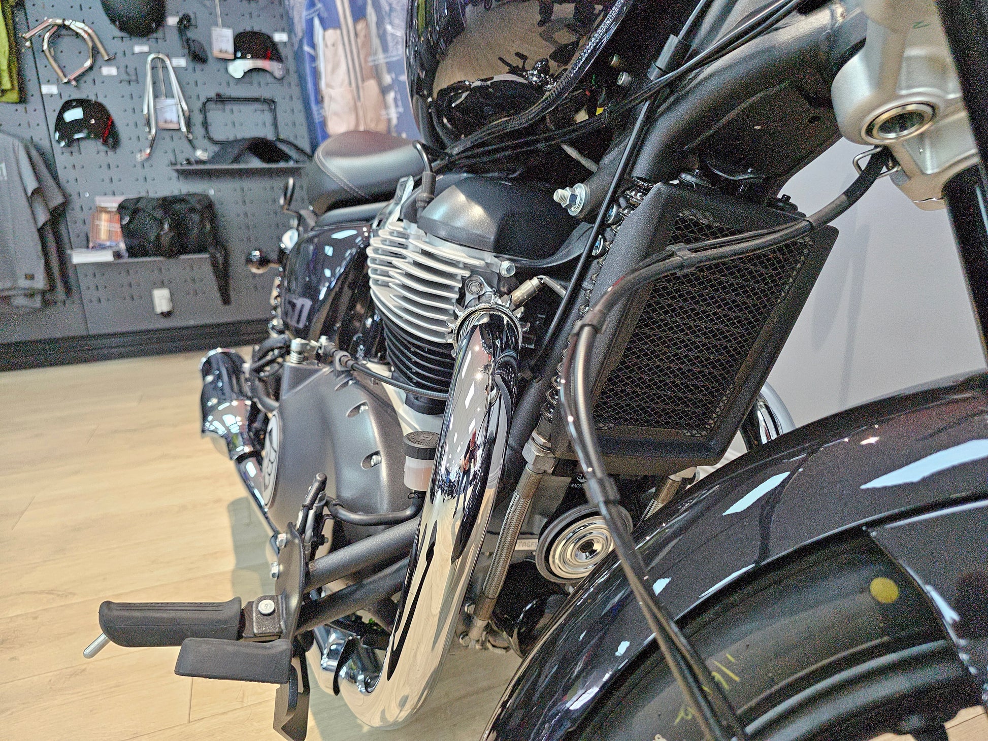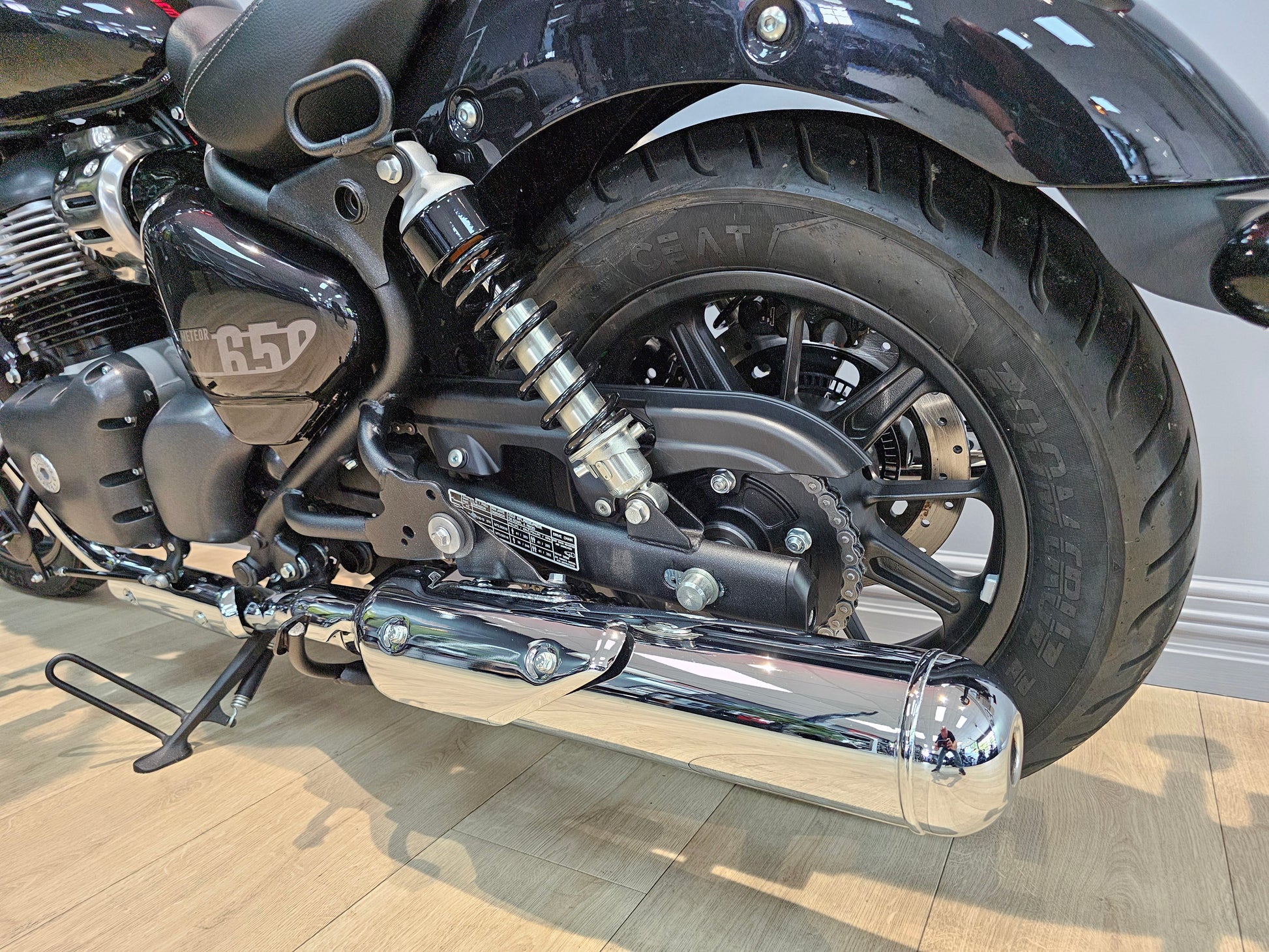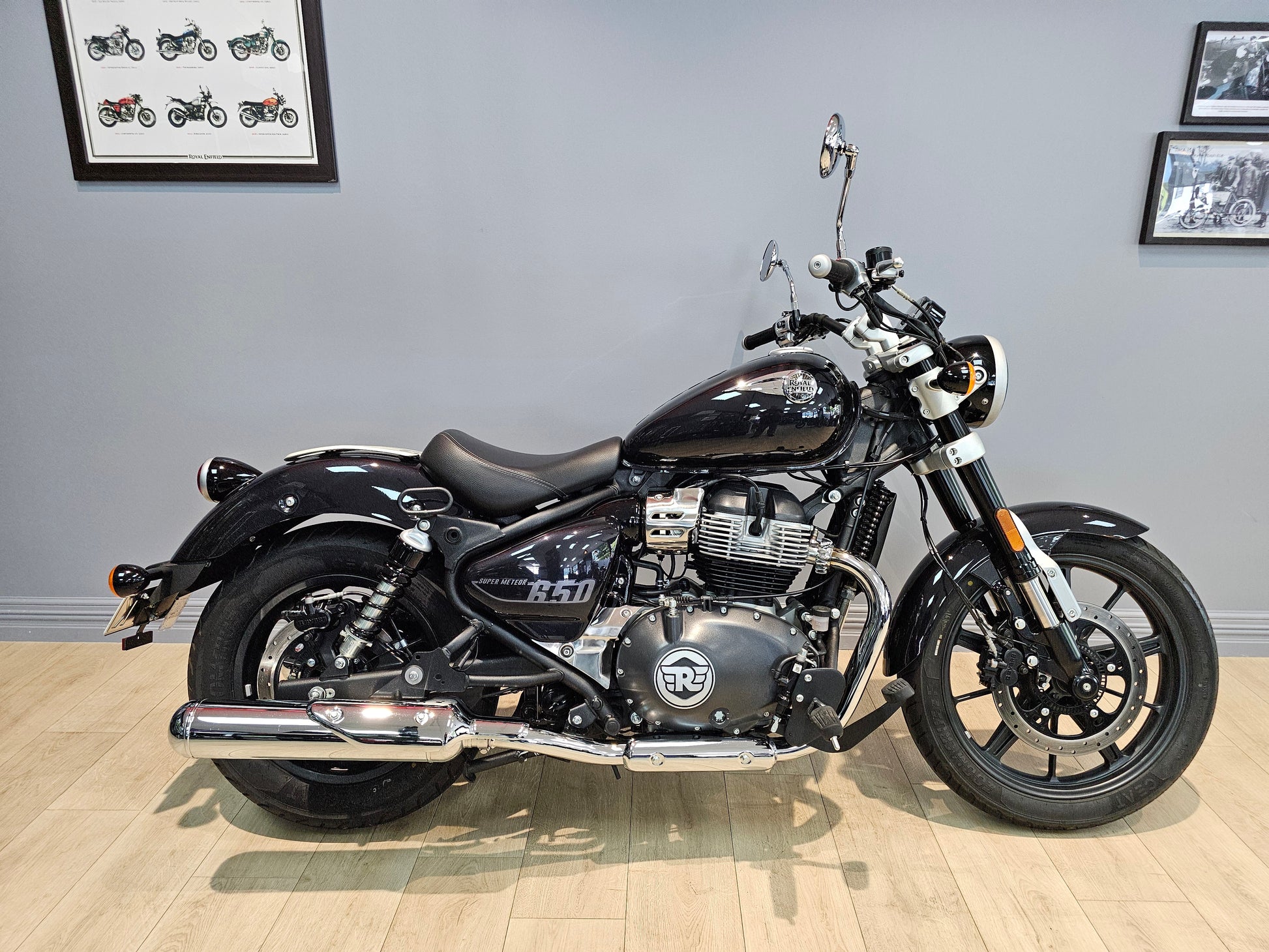 We currently have a 2025 Astral Black Super Meteor 650 with only 549 kms - the first service has been completed. The previous owner has made a couple of changes including heated grips, solo finisher kit and tank pad. It does come with both the original seat and passenger pegs.