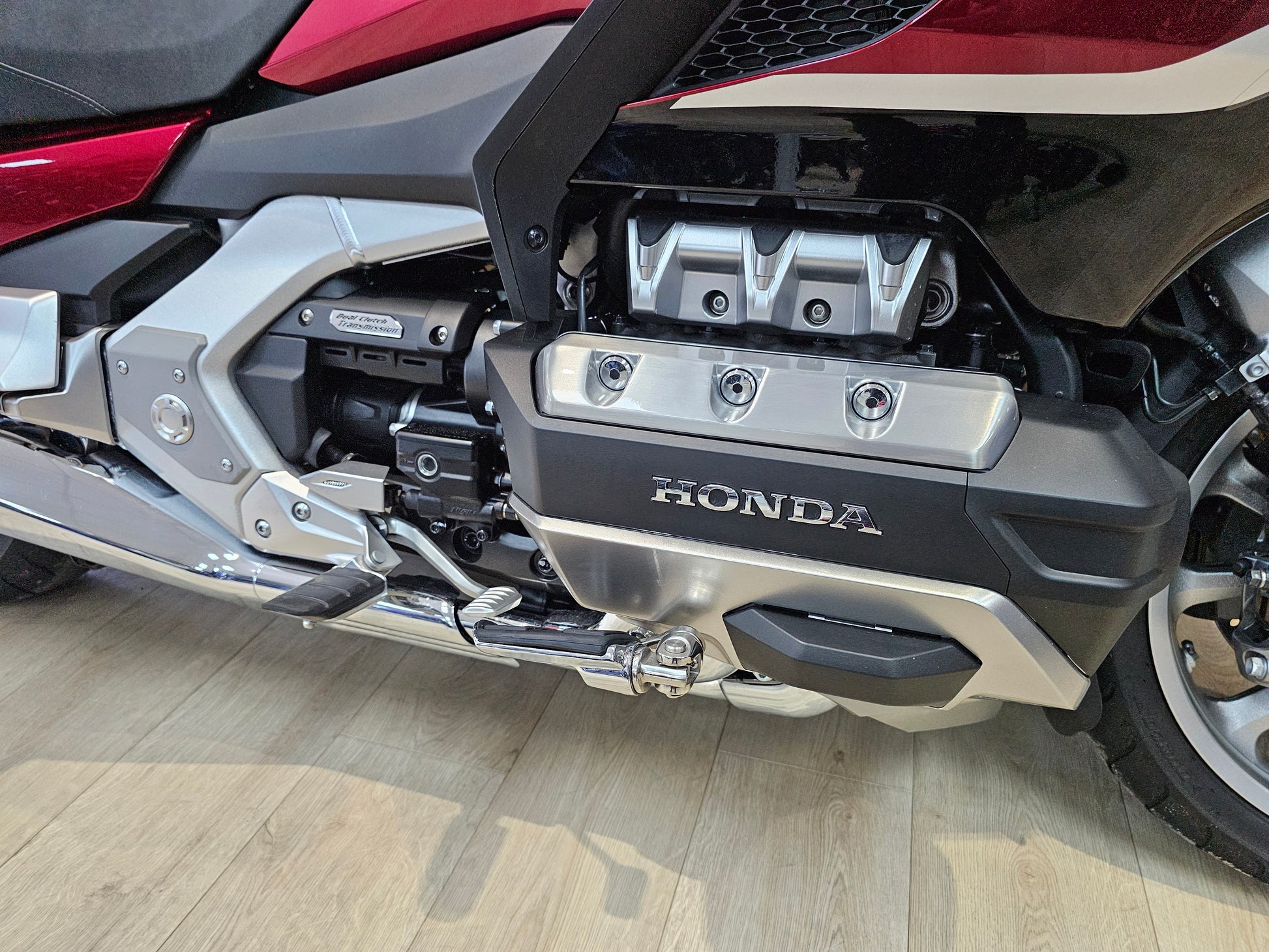 Honda's premium touring motorcycle features a powerful 1833cc liquid cooled flat six engine paired to a 7-speed DCT (with reverse & walking mode). It also offers advanced tech like Apple CarPlay / Android auto, several riding modes (Tour, Sport, Eco, Rain) all managed by its Throttle By Wire system to adjust power delivery, throttle response, and traction/ABS settings for different conditions, along with optional electronic suspension preload adjustments for load variations, providing a tailored riding experience for all journeys.
