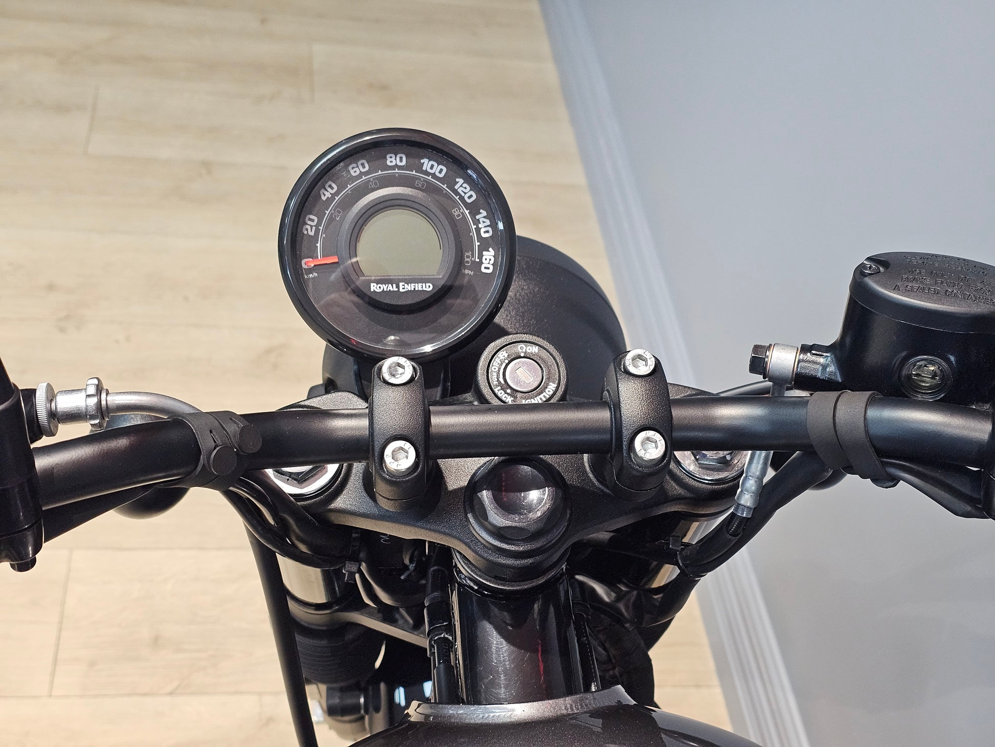 A shoutout to the analogue era but perfectly in sync for modern-day riding, the Hunter features a retro-style speedometer along with a digital LCD screen that tells you everything you need to know and is compatible with the Royal Enfield Tripper Navigation System that can be purchased as an optional extra.