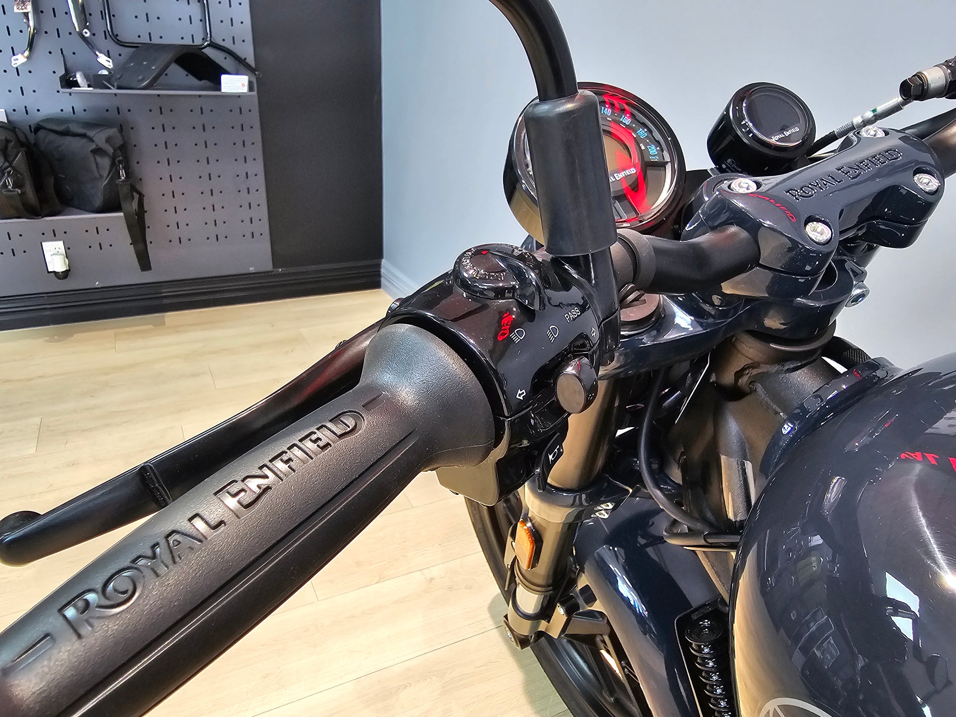 An LED and light-guard headlamp fitted in a custom, neo-modern nacelle offers improved visibility on every road. The Showa SF-BPF and Twin Tube RSU with 5-step preload adjustable rear suspension make it a smooth ride on every terrain, even with added weight. The retro-inspired, premium-looking switchgears with adjustable levers ensure every ride looks as good as it feels.